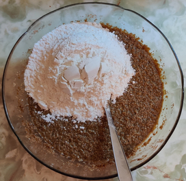 The vegetable oil and the brown sugar were mixed together with a fork: